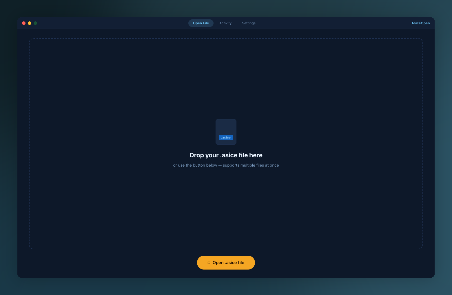 .asice (Associated Signature Container Extended) je európsky štandard pre elektronicky podpísané dokumenty. Používajú ho štátne úrady, súdy, banky a firmy v celej EÚ. Ak ste dostali takýto súbor od úradu alebo obchodného partnera — AsiceOpen je najrýchlejší spôsob ako ho otvoriť na Macu.